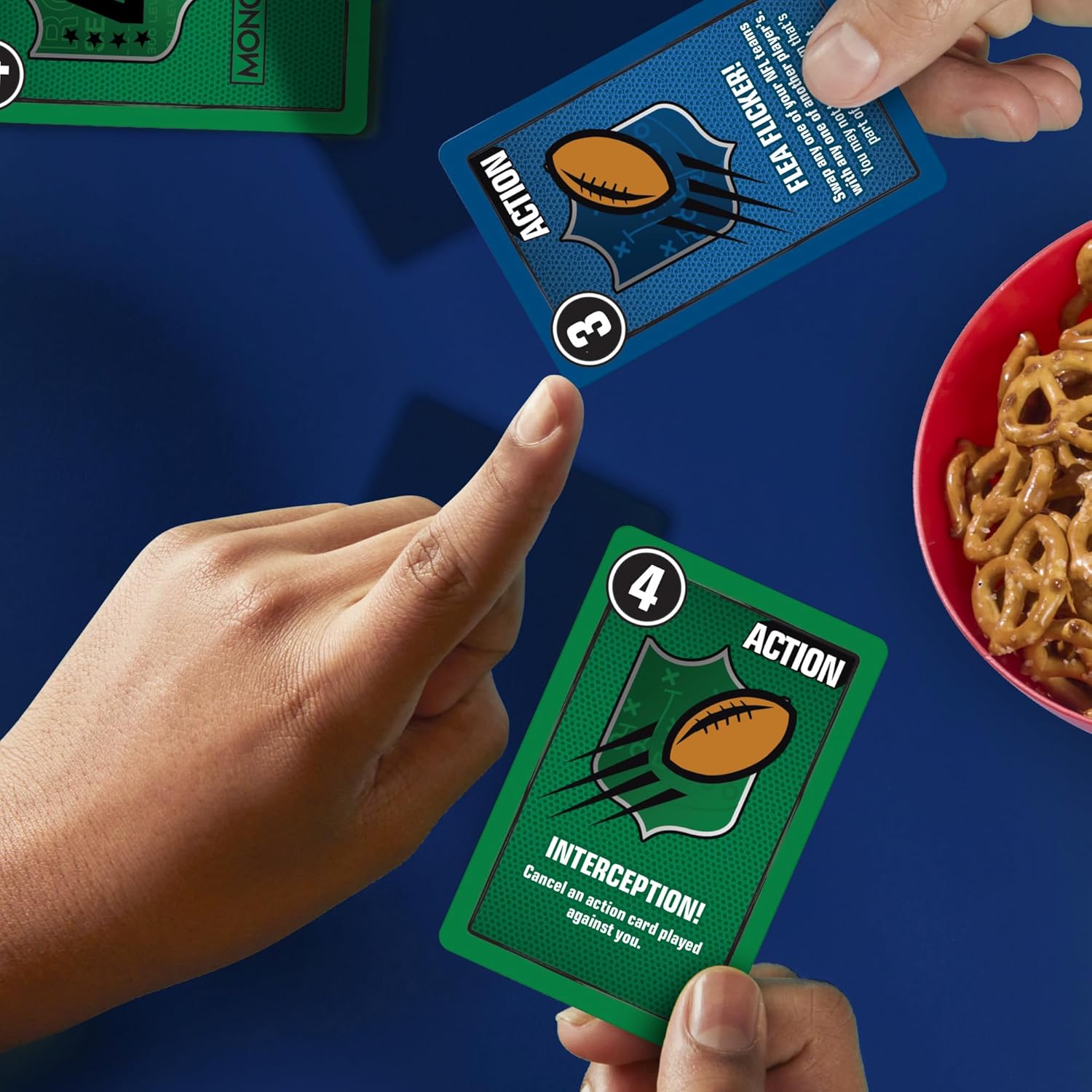 - NFL-THEMED MONOPOLY CARD GAME: A football twist on a family favorite! Compete to collect National Football League teams from across the league in the Monopoly Deal NFL Edition game. Ages 8+